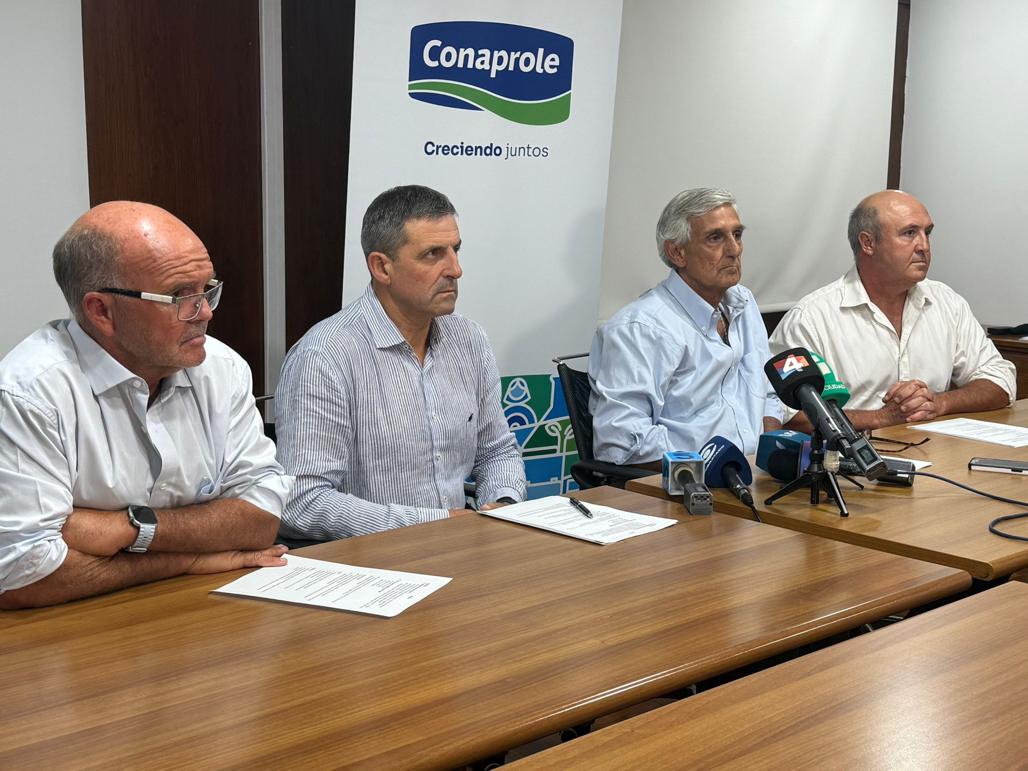 Por su parte el director Dr. Daniel Laborde se refirió a las evaluaciones que estará realizando la Asamblea de los 29, y pidió disculpas a los productores, así como a los consumidores y distribuidores, por las diferentes consecuencias del conflicto. La cooperativa y su producción hacen a “una comunidad muy grande; una comunión muy interesante entre el público que consume los productos Conaprole y la cooperativa”, comentó, al tiempo que advirtió que, en el escenario planteado actualmente, existe “serio riesgo” de que productores se vean obligados a derramar leche.