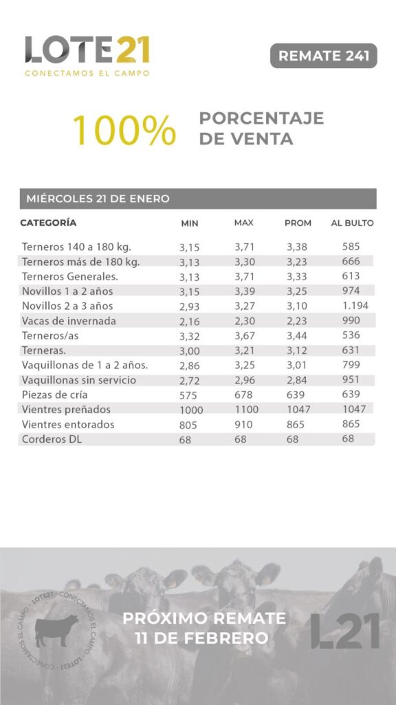 Roberto Mateu Méndez, rematador e integrante de Ganadera del Norte repasó los valores obtenidos en las diferentes categorías (ver tabla adjunta bajo el audio), subrayando que algunos fueron “extraordinarios”.