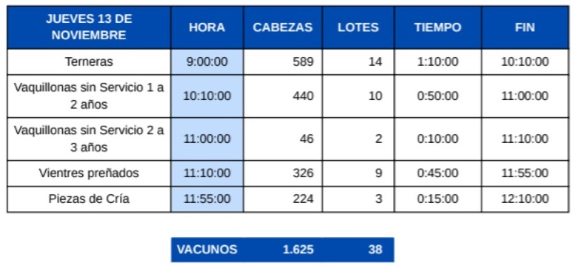 Alejandro Silveira, director del escritorio Miguel A. Izmendi, detalló lo programado para la jornada del jueves 13 de noviembre. Se inicia con el remate Herencia, que ofrece 1.625 vientres seleccionados, entre angus, aberdeen angus y cruzas entre estas razas británicas.